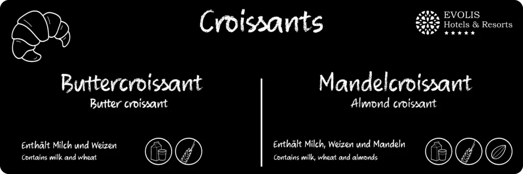 Buffets sind ein wichtiger Kontaktpunkt, bei dem eine klare und elegante Präsentation genauso wichtig ist wie die Qualität der Speisen und des Services. Mit Edikio können Hoteliers professionelle, mehrsprachige Buffet Schilder erstellen und drucken, die alle wichtigen Informationen wie Allergene oder spezielle Ernährungsformen enthalten. Unsere Lösungen ermöglichen das schnelle Drucken eleganter, langlebiger Buffet Etiketten, die zum Erscheinungsbild Ihres Hotels passen. So verbessern Sie die Kommunikation mit internationalen Gästen, erhöhen die Lebensmittelsicherheit und das Vertrauen – und erleichtern dem Personal die Arbeit bei Menüwechseln.