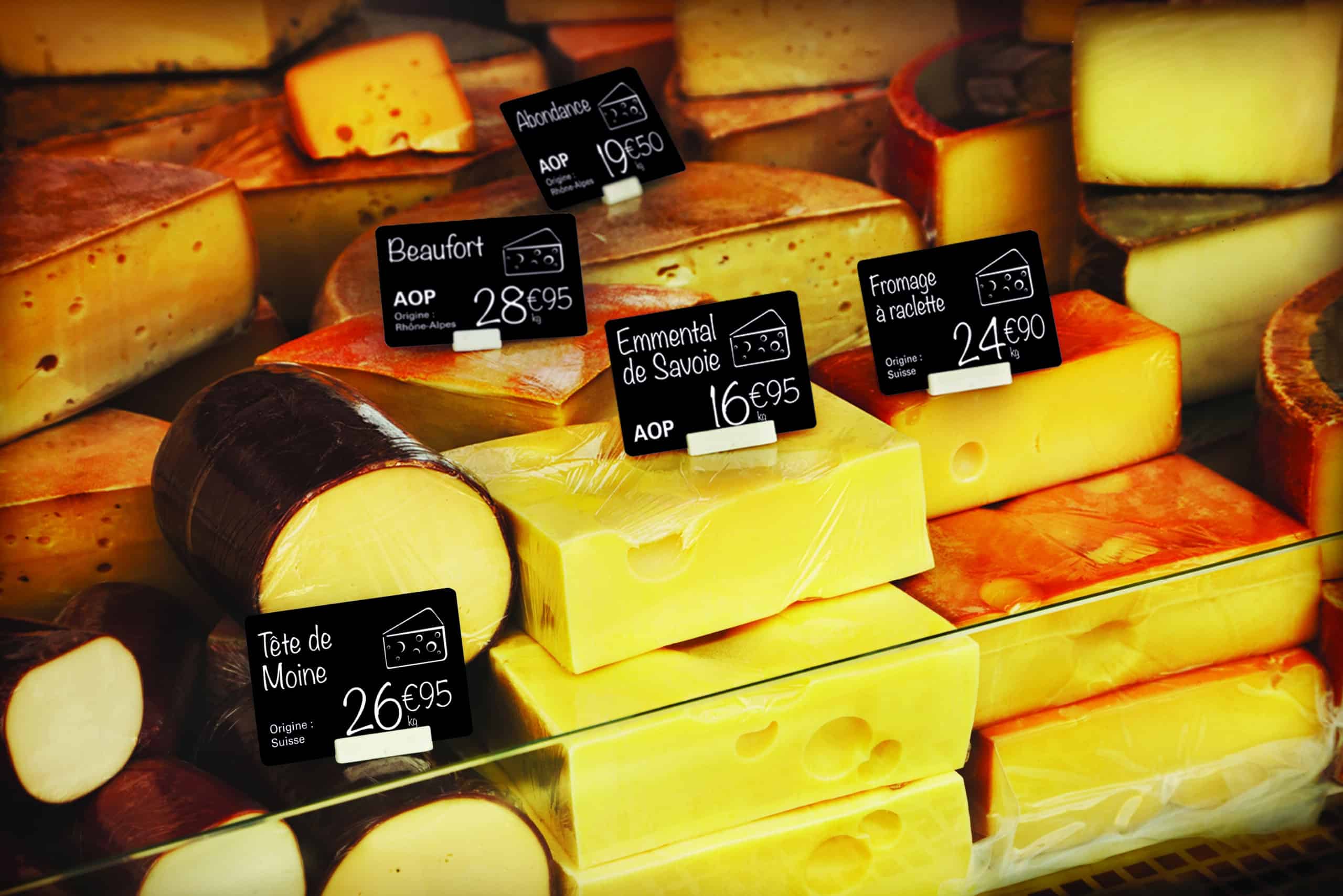 Eine klare Beschilderung ist ein wichtiges Verkaufsinstrument, vor allem für Kunden, die mit den verschiedenen Sorten, die Sie anbieten können, nicht vertraut sind. Und wenn sie eine Orientierungshilfe benötigen, kommen die Präsentationsetiketten ins Spiel. Müssen Sie den Namen, die Käsesorte oder andere Informationen über die Herkunft Ihrer Produkte angeben? Stellen Sie ein Beschriftungslösung. Mit Edikio Price Tag brauchen Sie keinen „Munster“, um Ihre eigenen Etiketten zu erstellen! Sie sind :