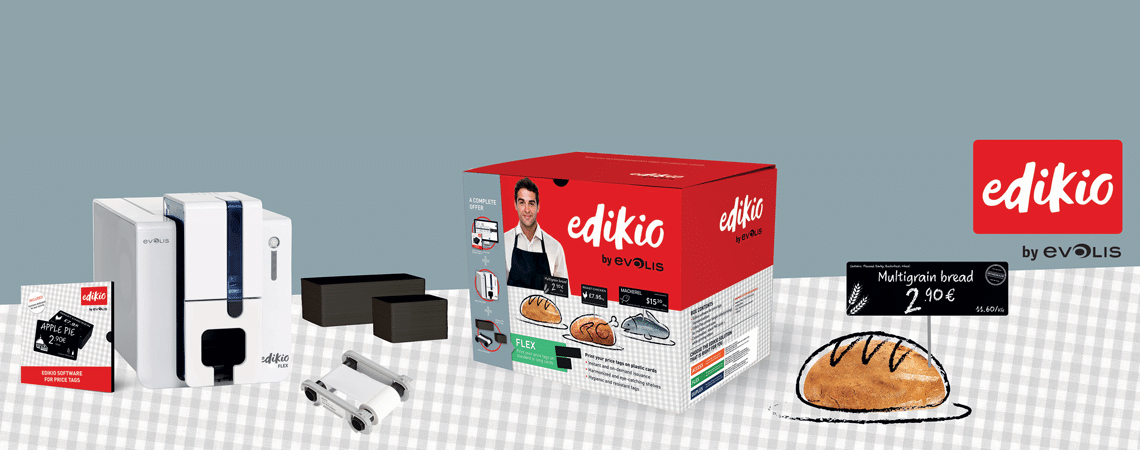 • Edikio Duplex : Ideal für den Bedarf an großen Mengen an Etiketten im ein- oder doppelseitigen Druck. Sie ermöglicht die Anzeige von Verbraucherinformationen auf der Vorderseite und von Informationen für das Verkaufspersonal auf der Rückseite.