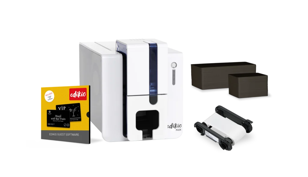 Mit Edikio GuestMit unserem umfassenden Angebot an Zubehör und Verbrauchsmaterialien für alle Ihre Bedürfnisse bringen Sie die Identität Ihrer Einrichtung voll zum Ausdruck. Karten, Druckbänder, Halterungen – jedes Element passt sich Ihrem Stil und Ihren Werten an. Elegante Metallständer zum Aufstellen oder Aufklipsen, Druckbänder in mehreren Farben, alternative Druckmedien zu PVC – alles ist darauf ausgelegt, Ihre Einrichtung aufzuwerten.