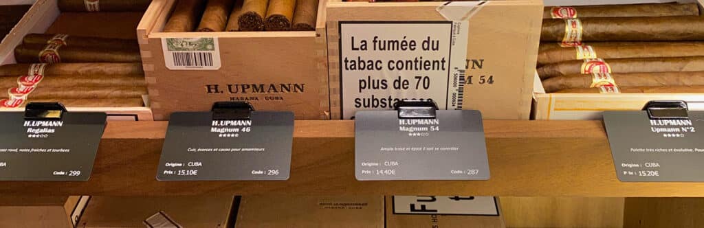 Passende Preisschilder für die Zigarrenkiste des Ladens „Le Cigare et la Plume”
