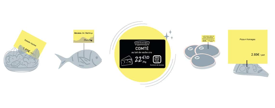 - achten Sie auf die Größe der Texte: Ihre Etiketten müssen für Ihre Kunden von Ihrer Theke aus lesbar sein (manchmal 1 bis 2 Meter entfernt).
