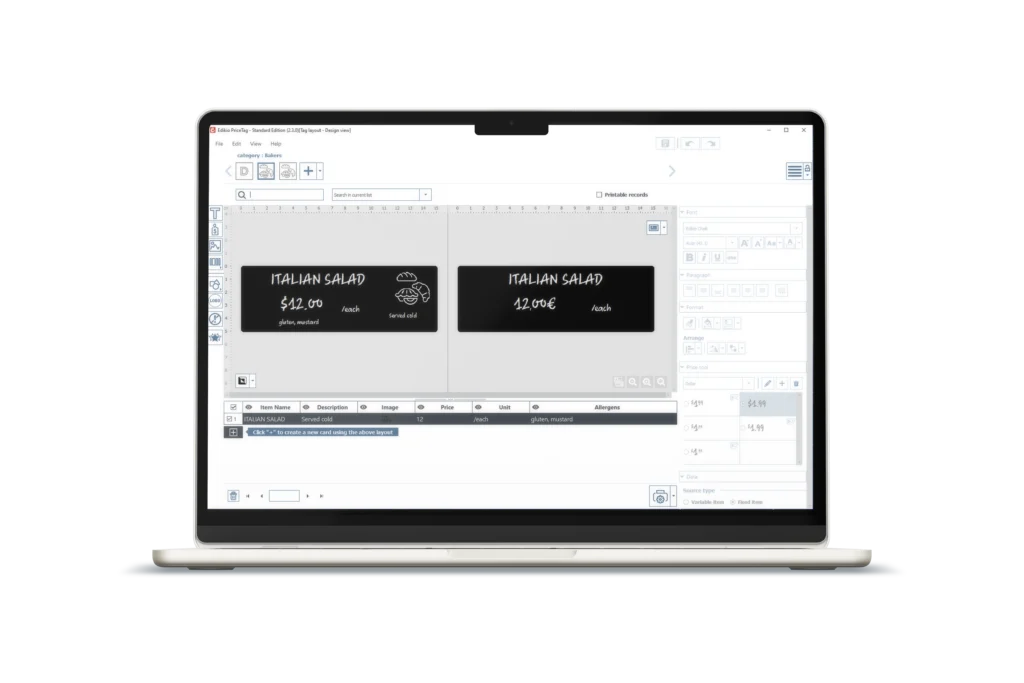 Mit Edikio Flex nutzen Sie die Funktionen der „Standard Edition“ der Edikio Price Tag Software – kompatibel mit Windows® und macOS.