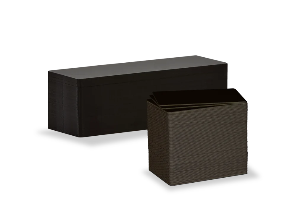 • 200 schwarze PVC-Karten (100 im Kreditkartenformat, 100 im Langformat)