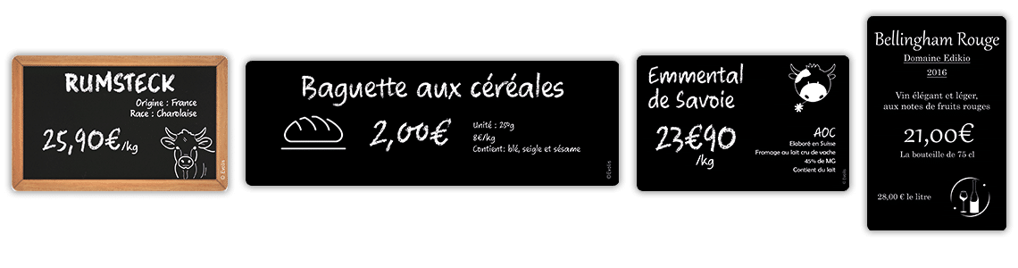 - Ihre Etiketten vollständig personalisieren von Preisen, die dem Image Ihres Geschäfts entsprechen,